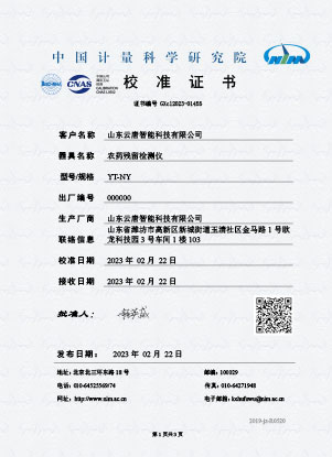 農(nóng)殘校準(zhǔn)證書